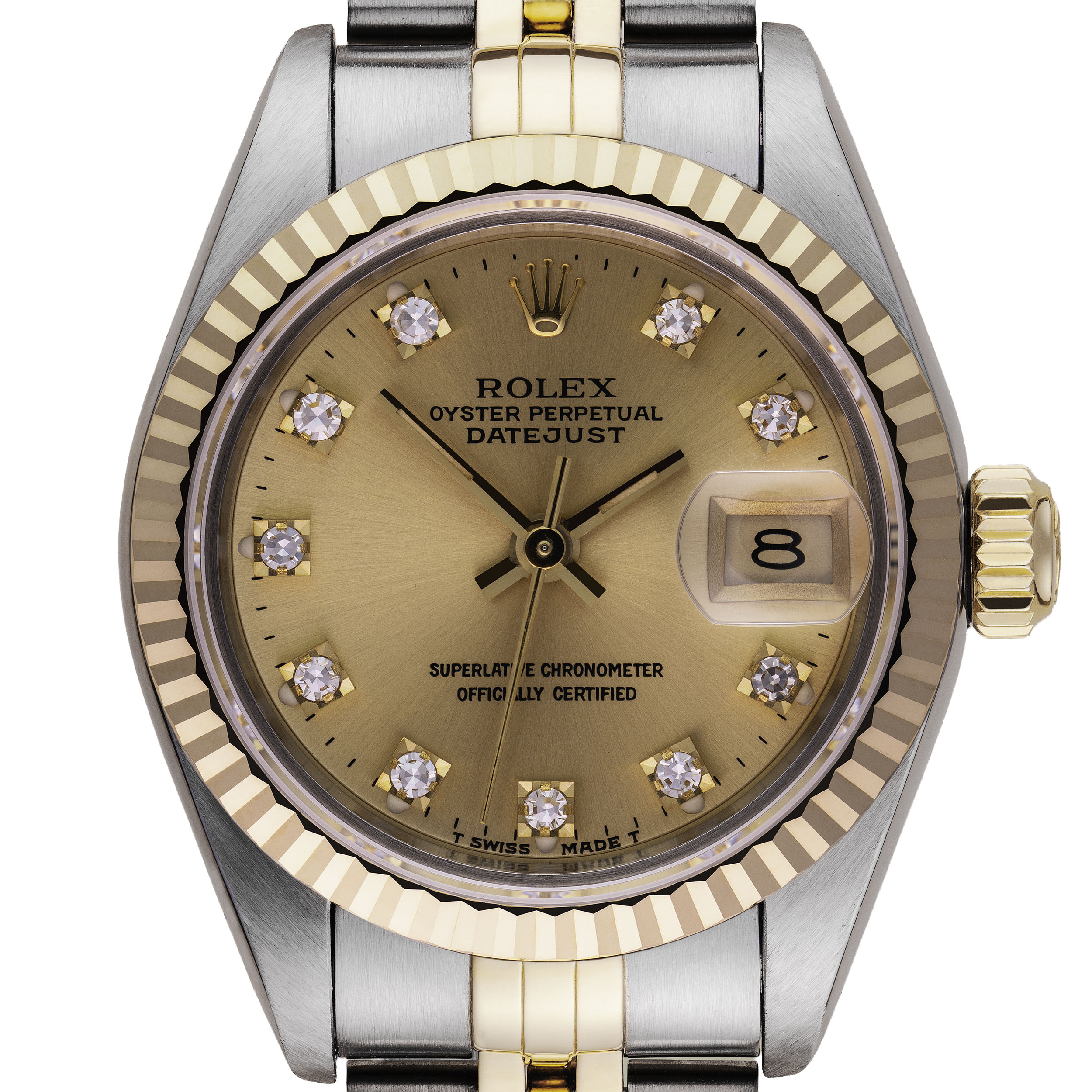 | Dial | Champagne, White with Diamond Hour Marks |