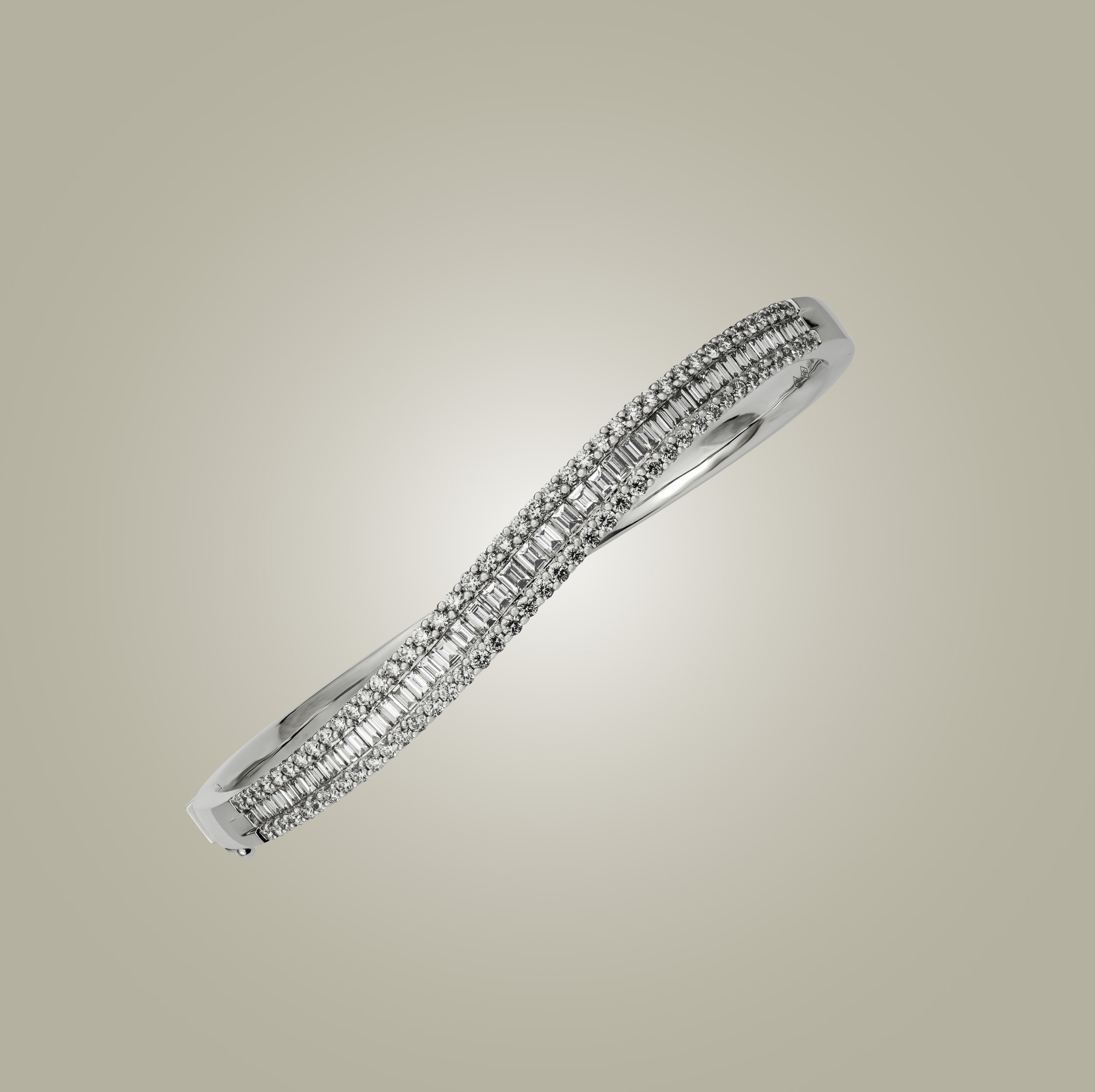 Round and baguette cut diamond twisted bangle 2.45cts #BA0002